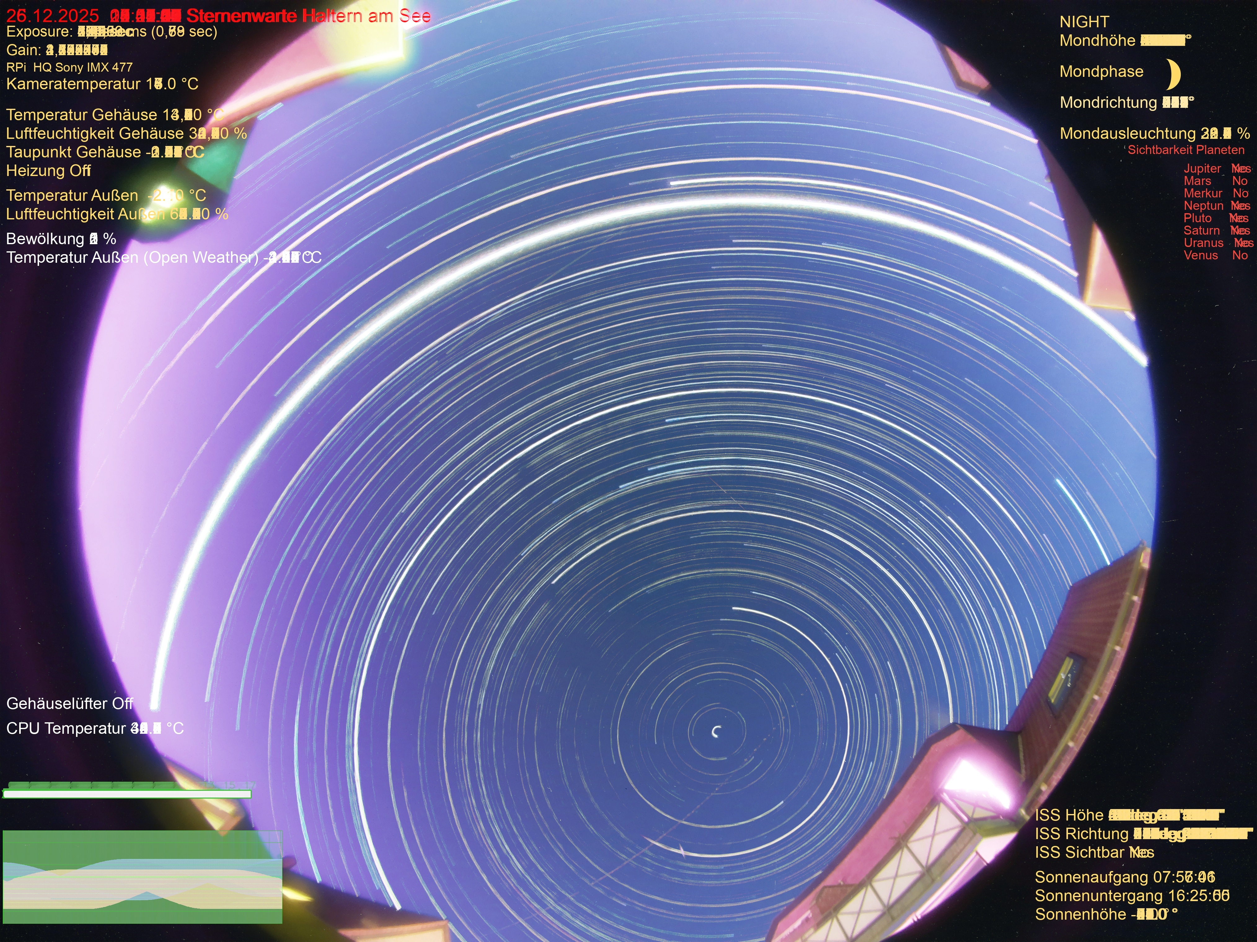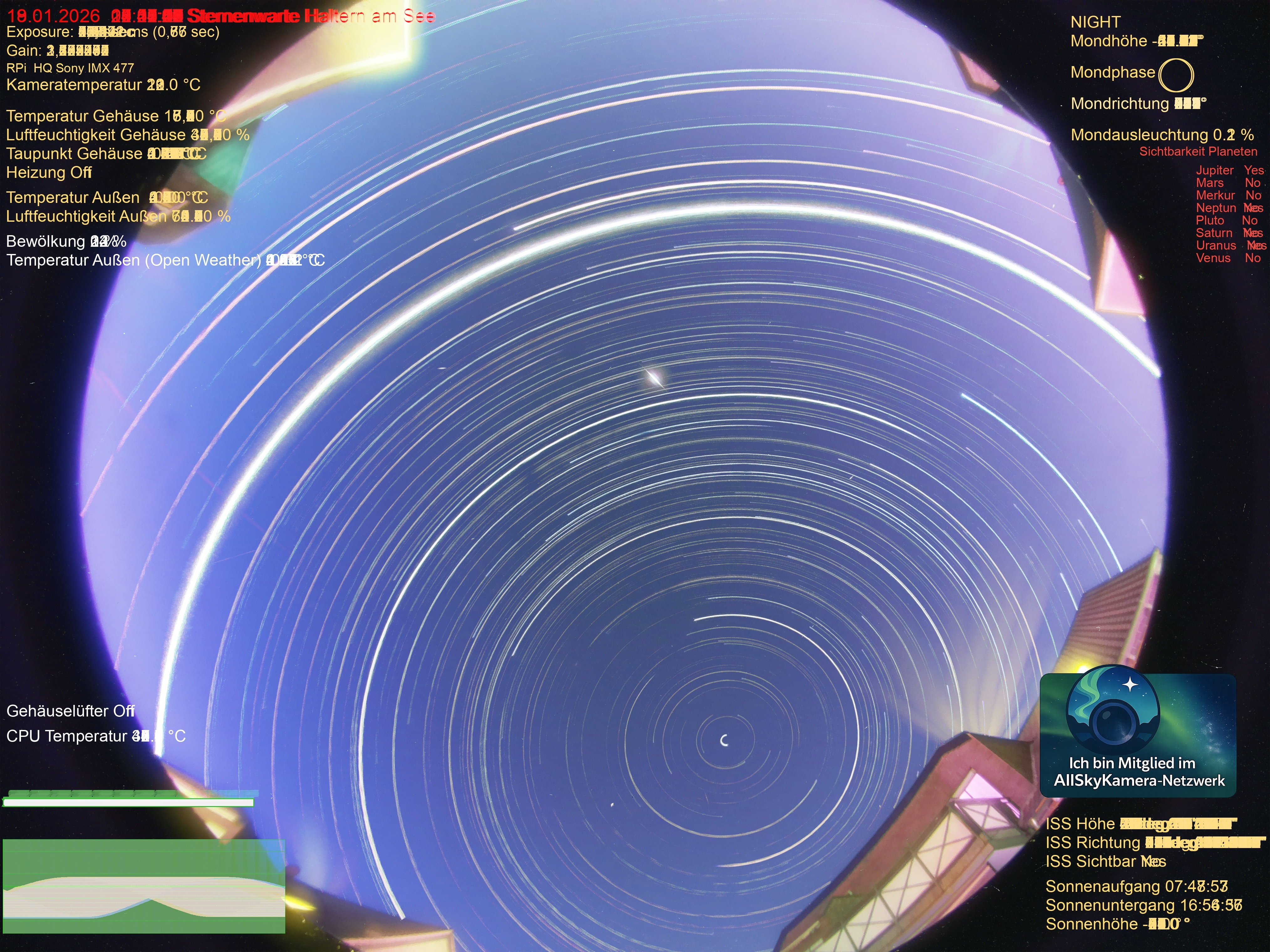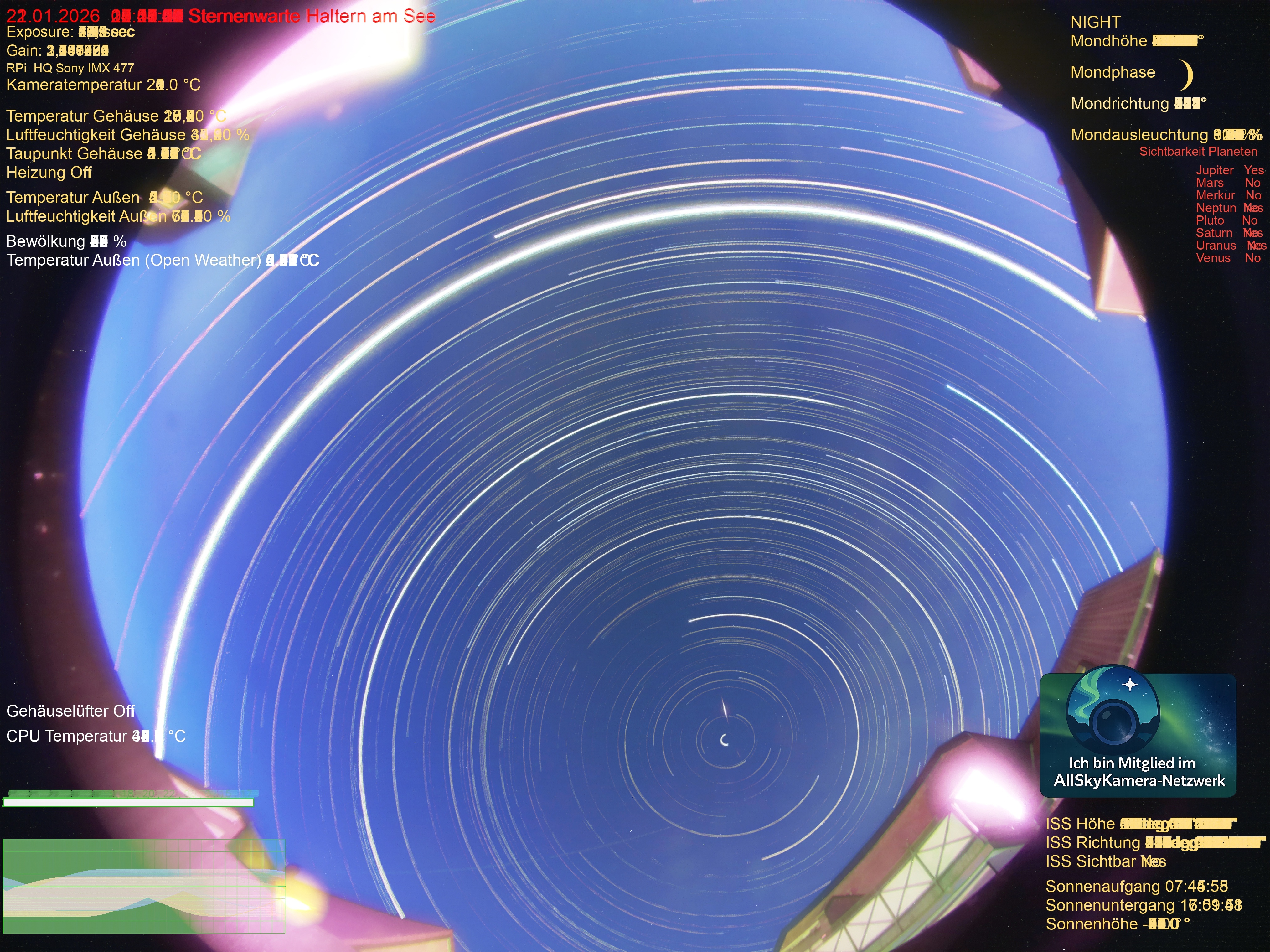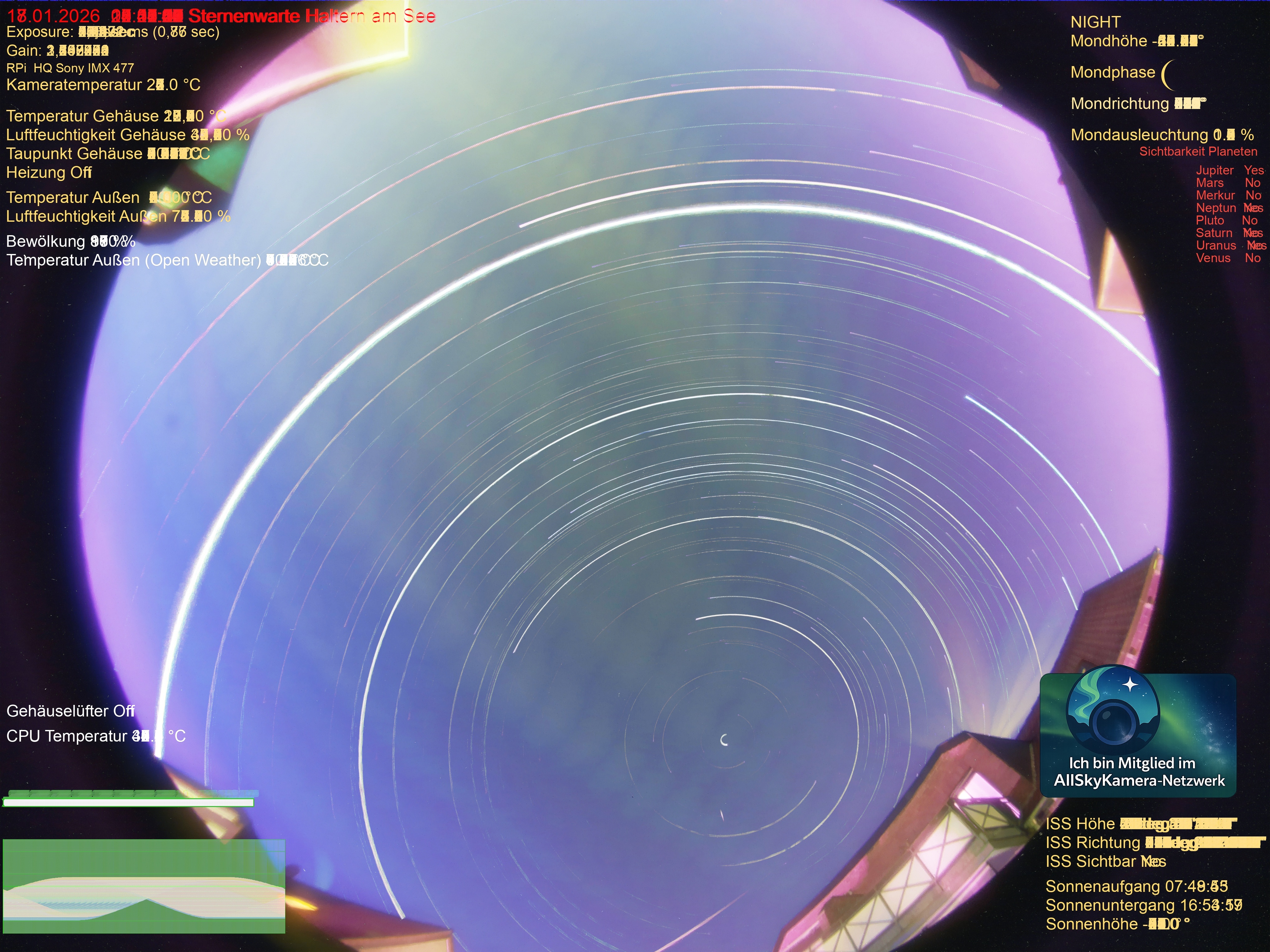 | Datum | 🎥 Video | 📈 Keogram | 🌃 SQM | 🌌 Startrails |