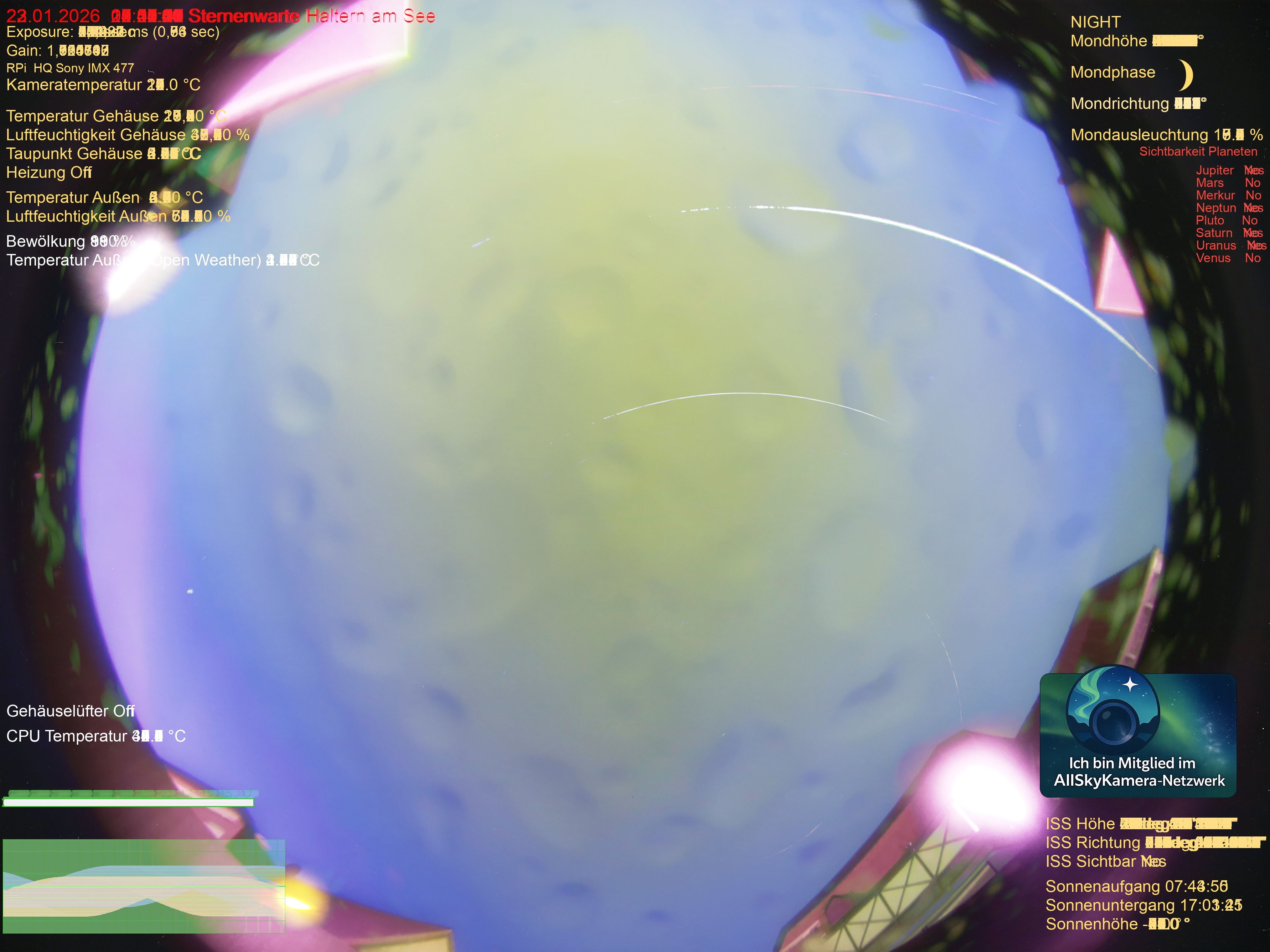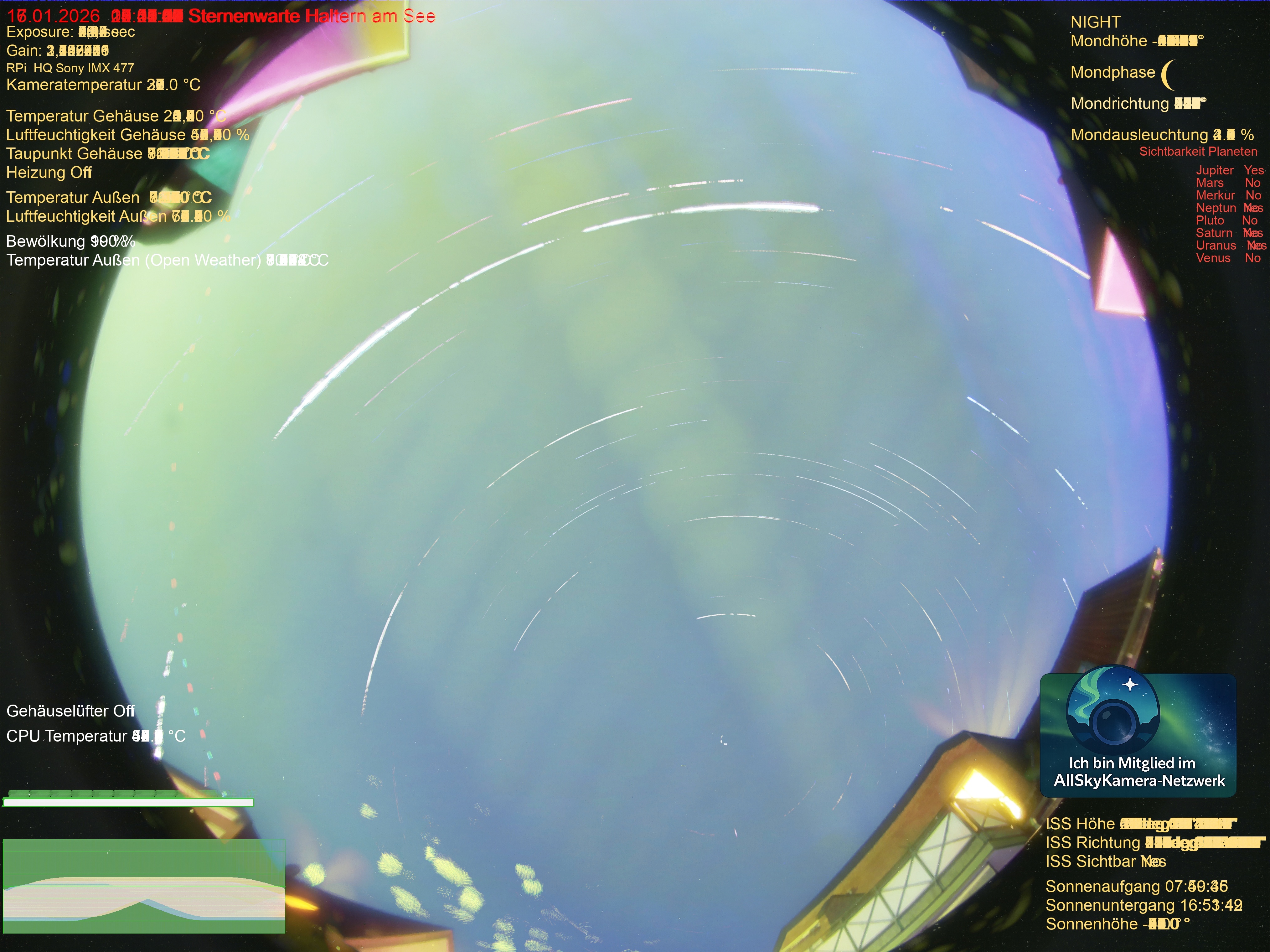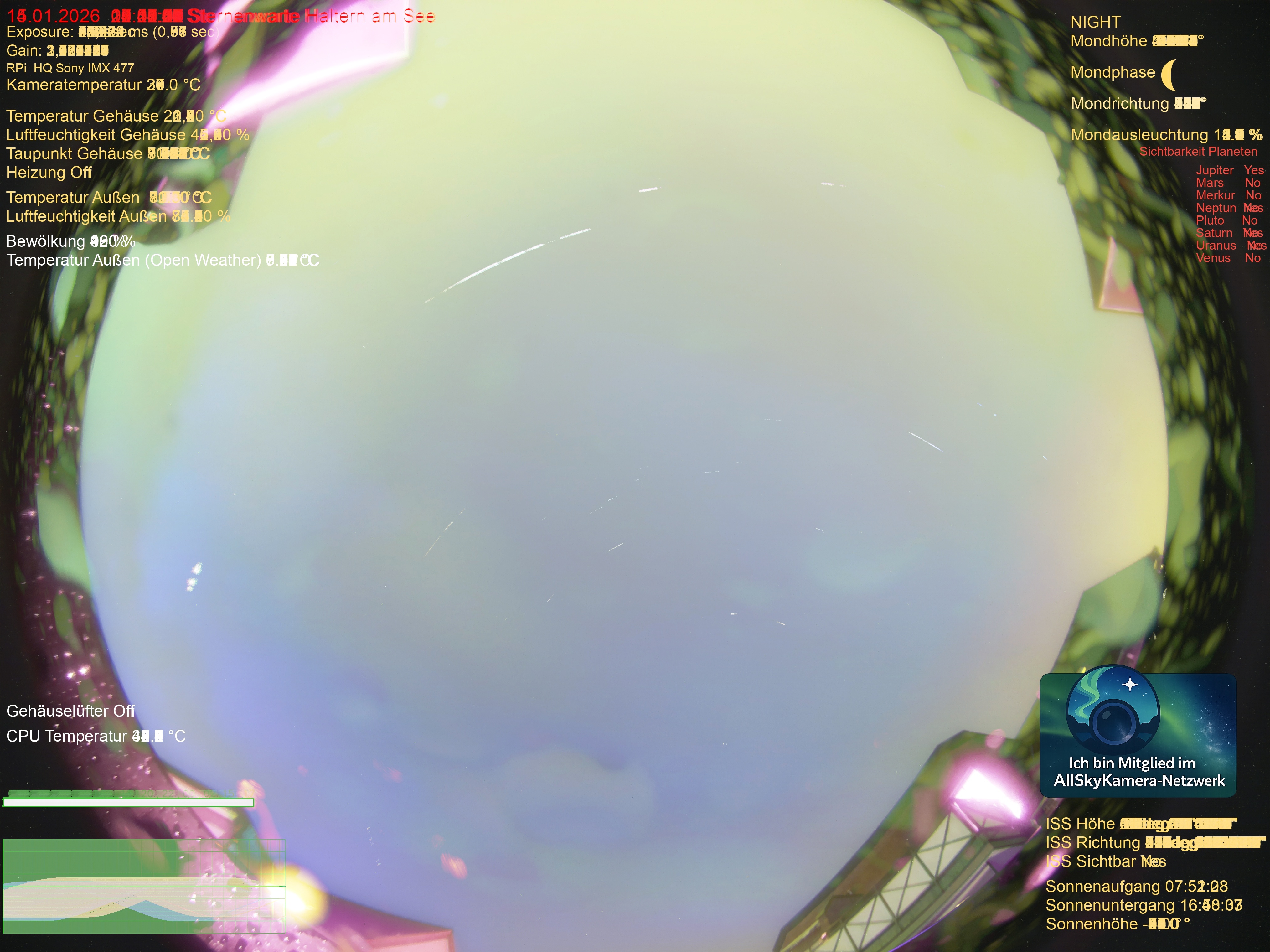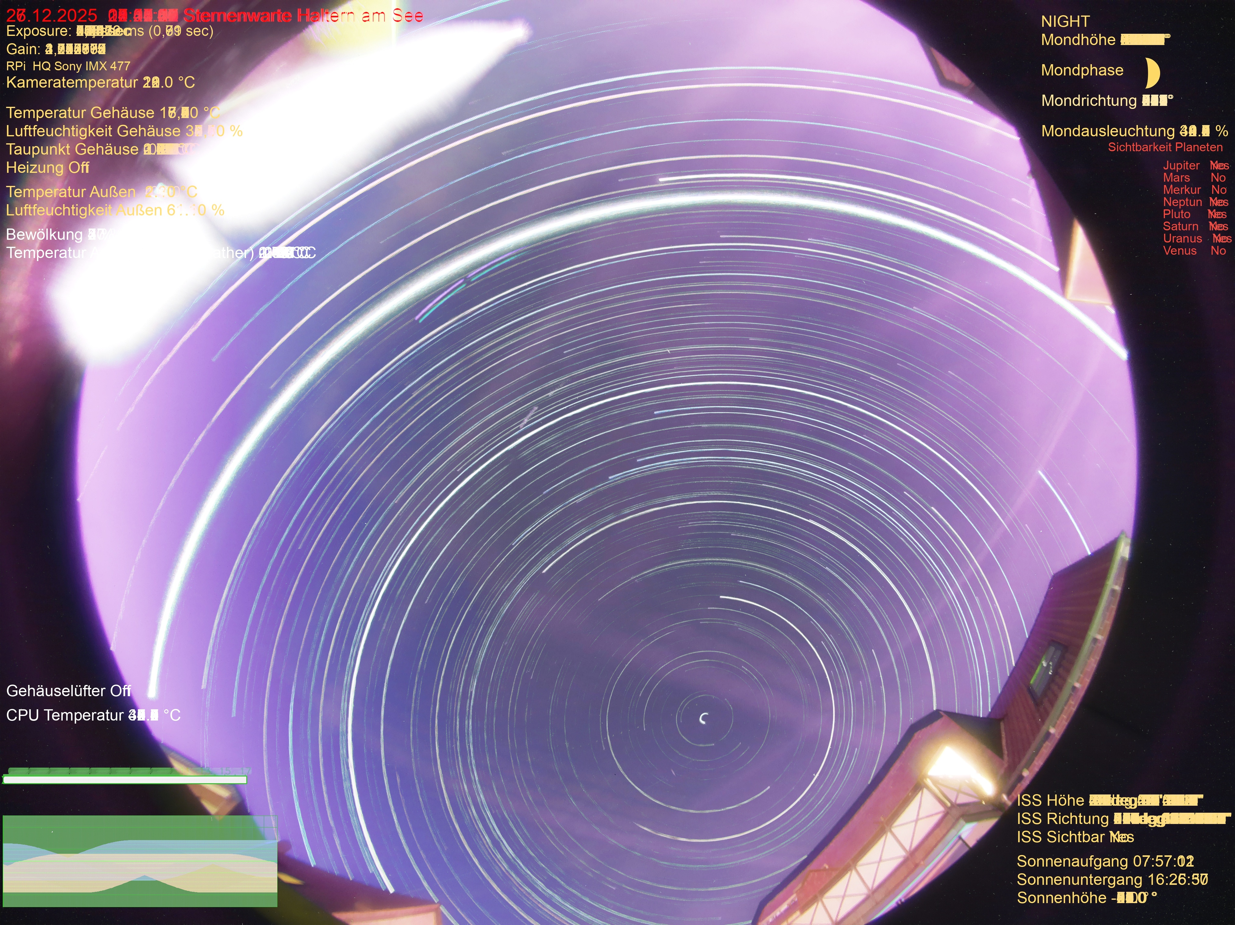 | Datum | 🎥 Video | 📈 Keogram | 🌃 SQM | 🌌 Startrails |