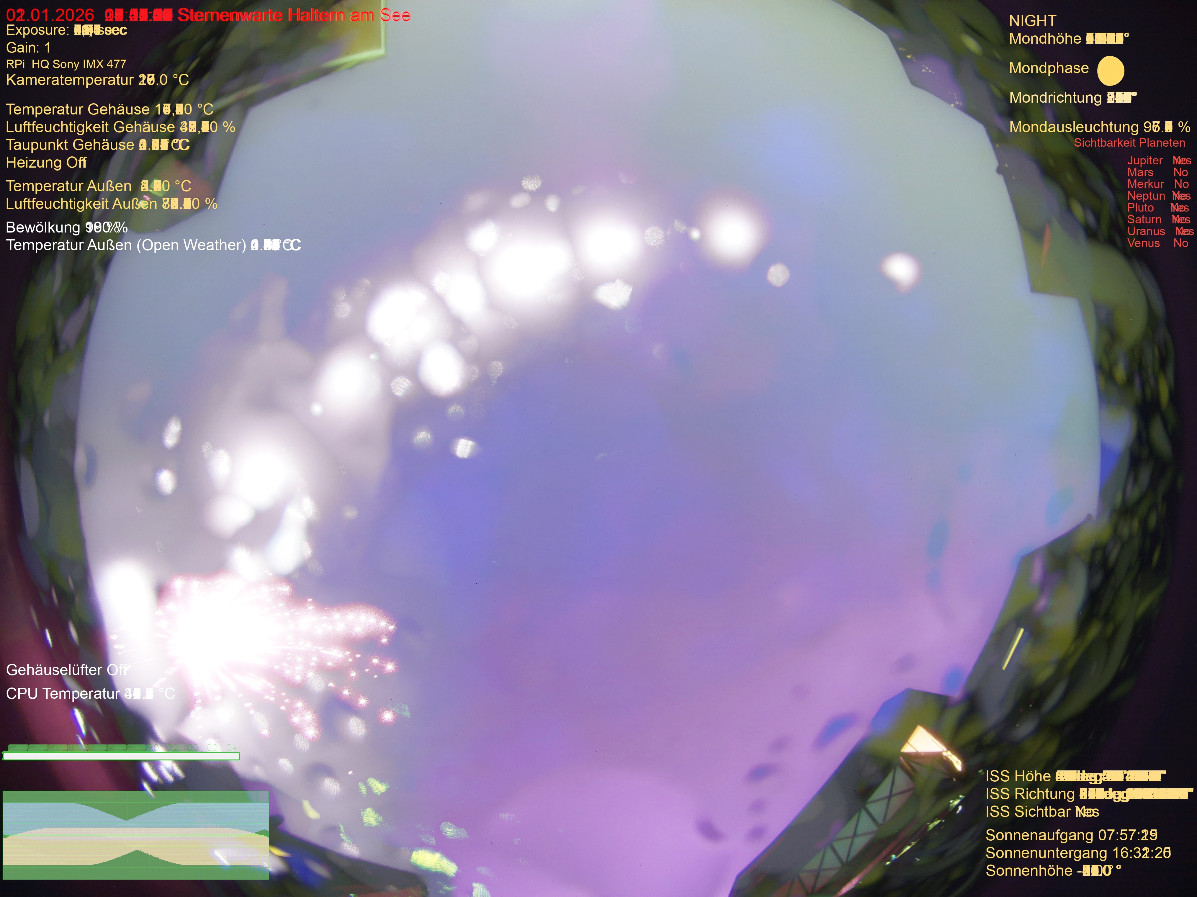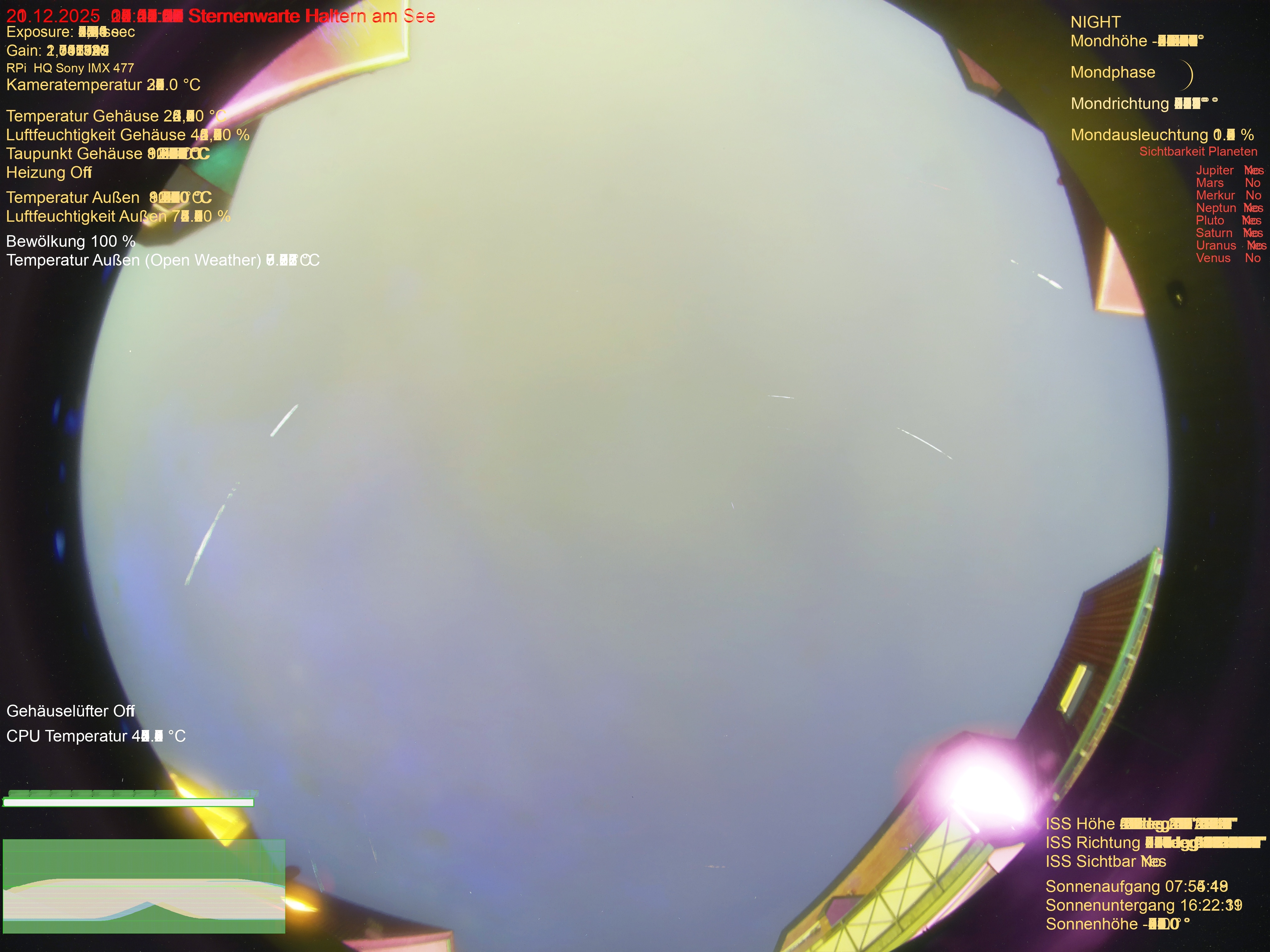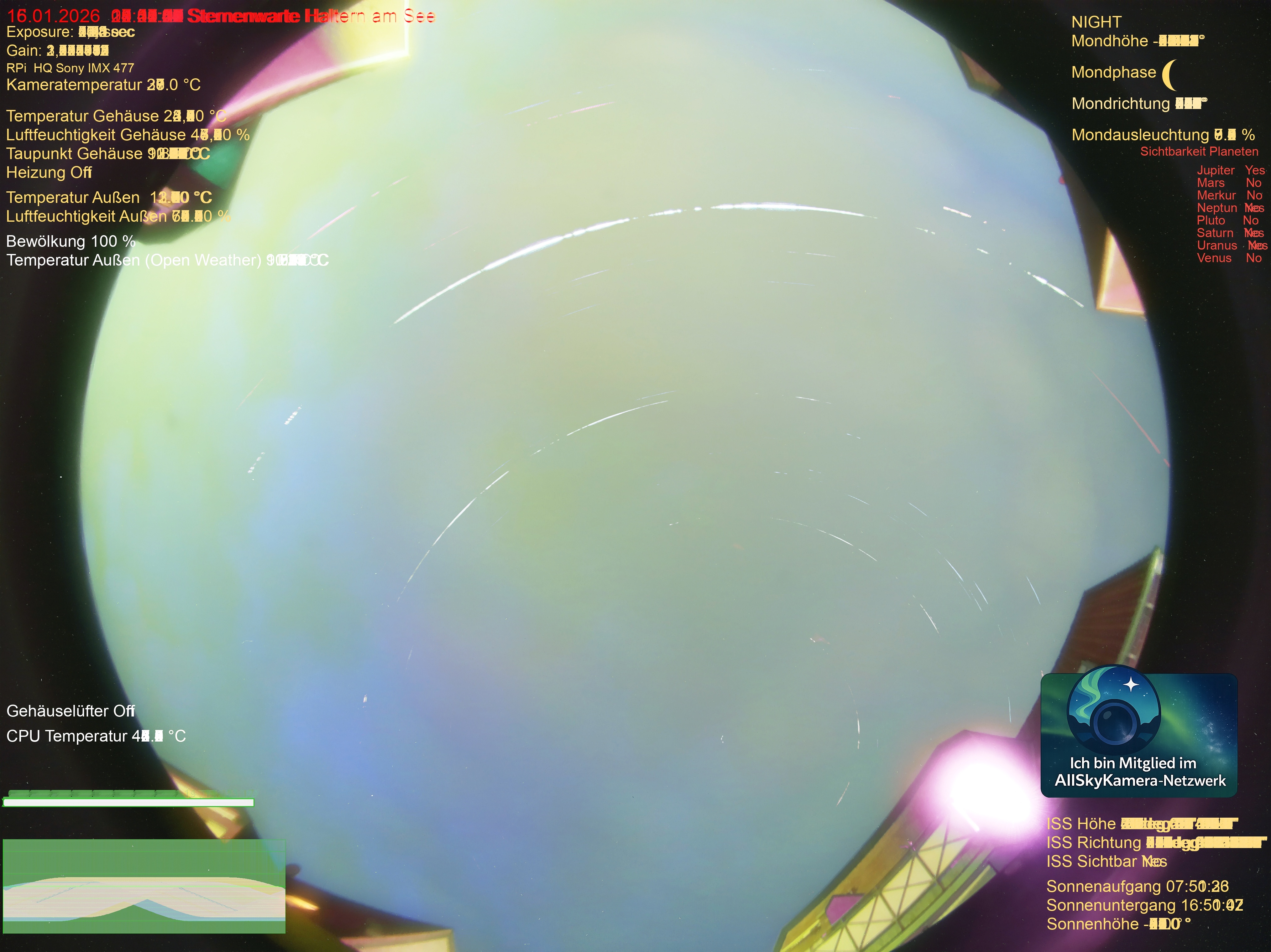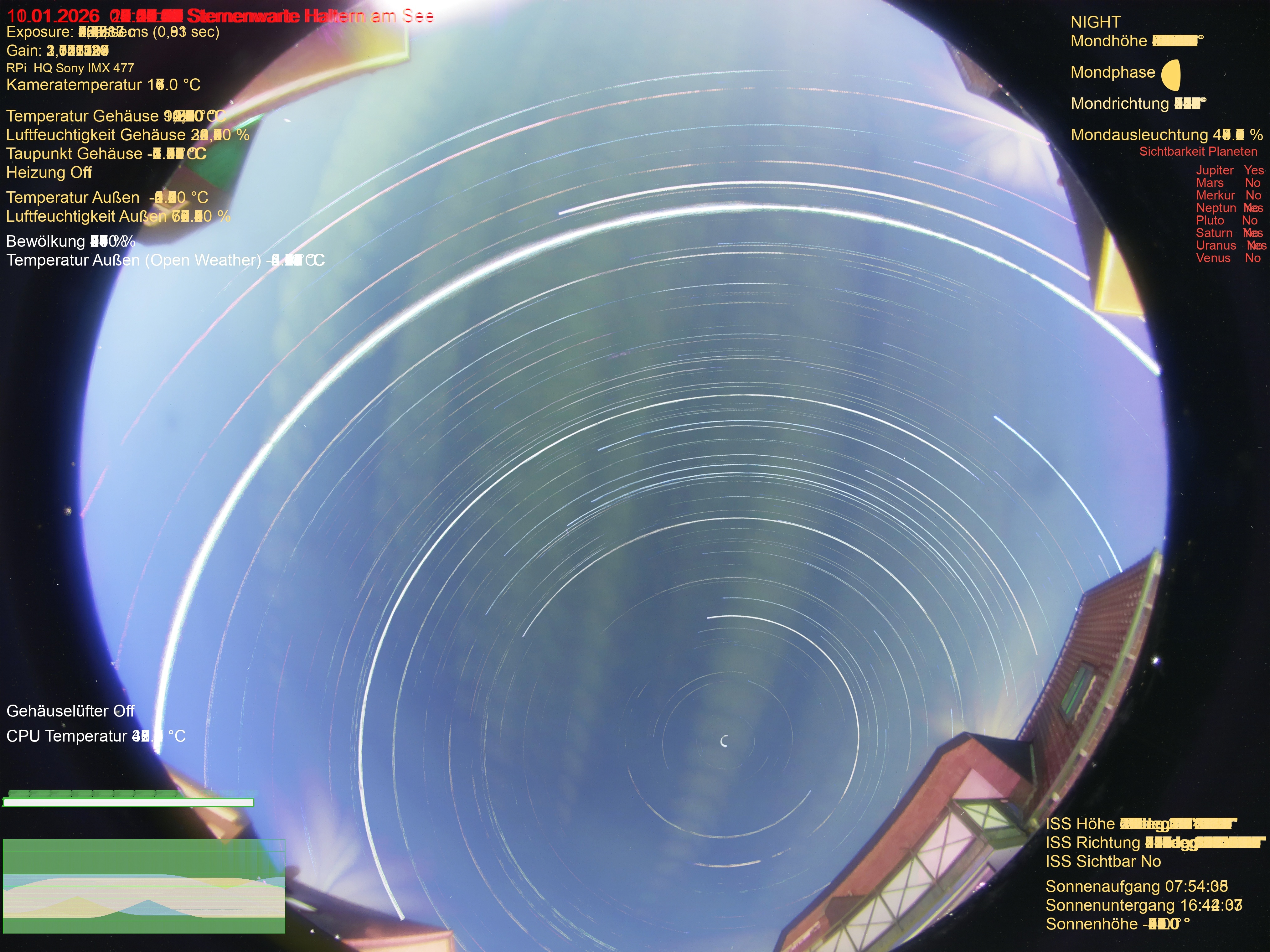 | Datum | 🎥 Video | 📈 Keogram | 🌃 SQM | 🌌 Startrails |