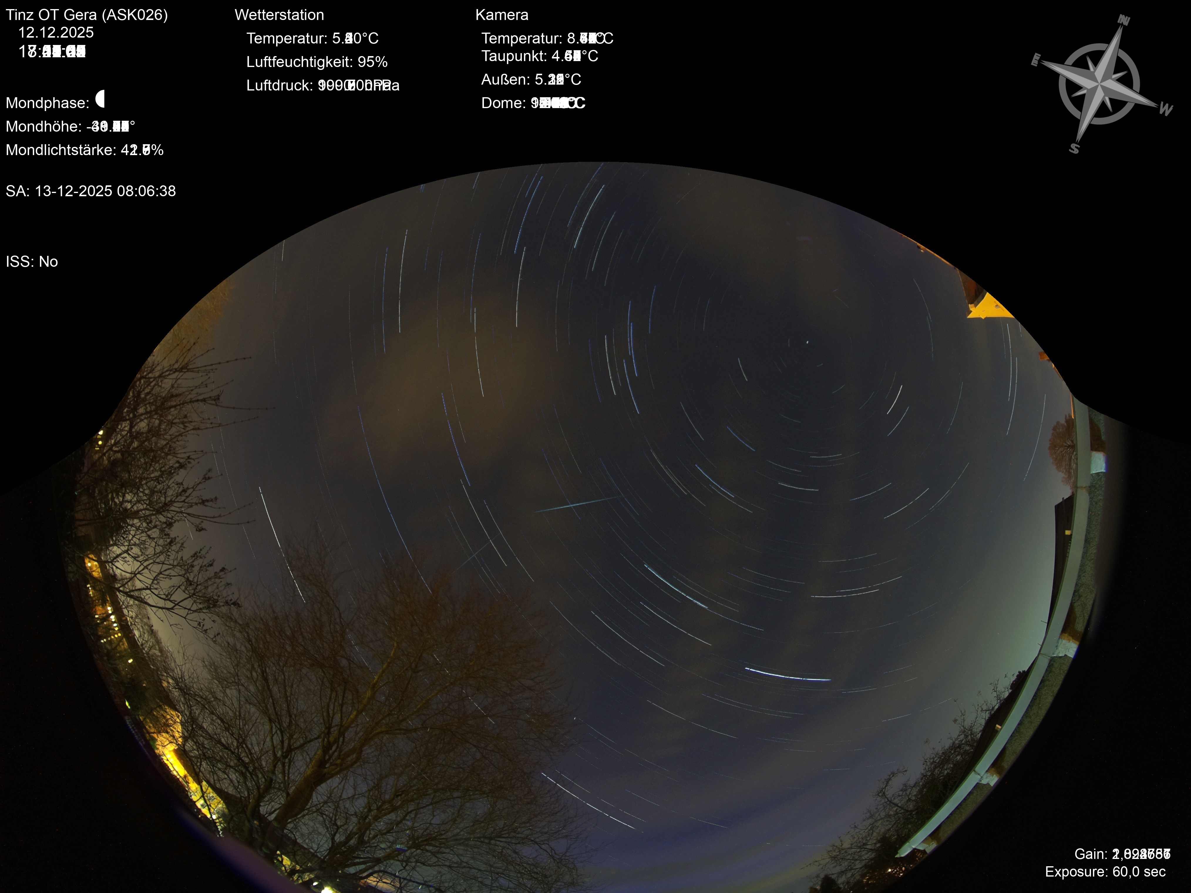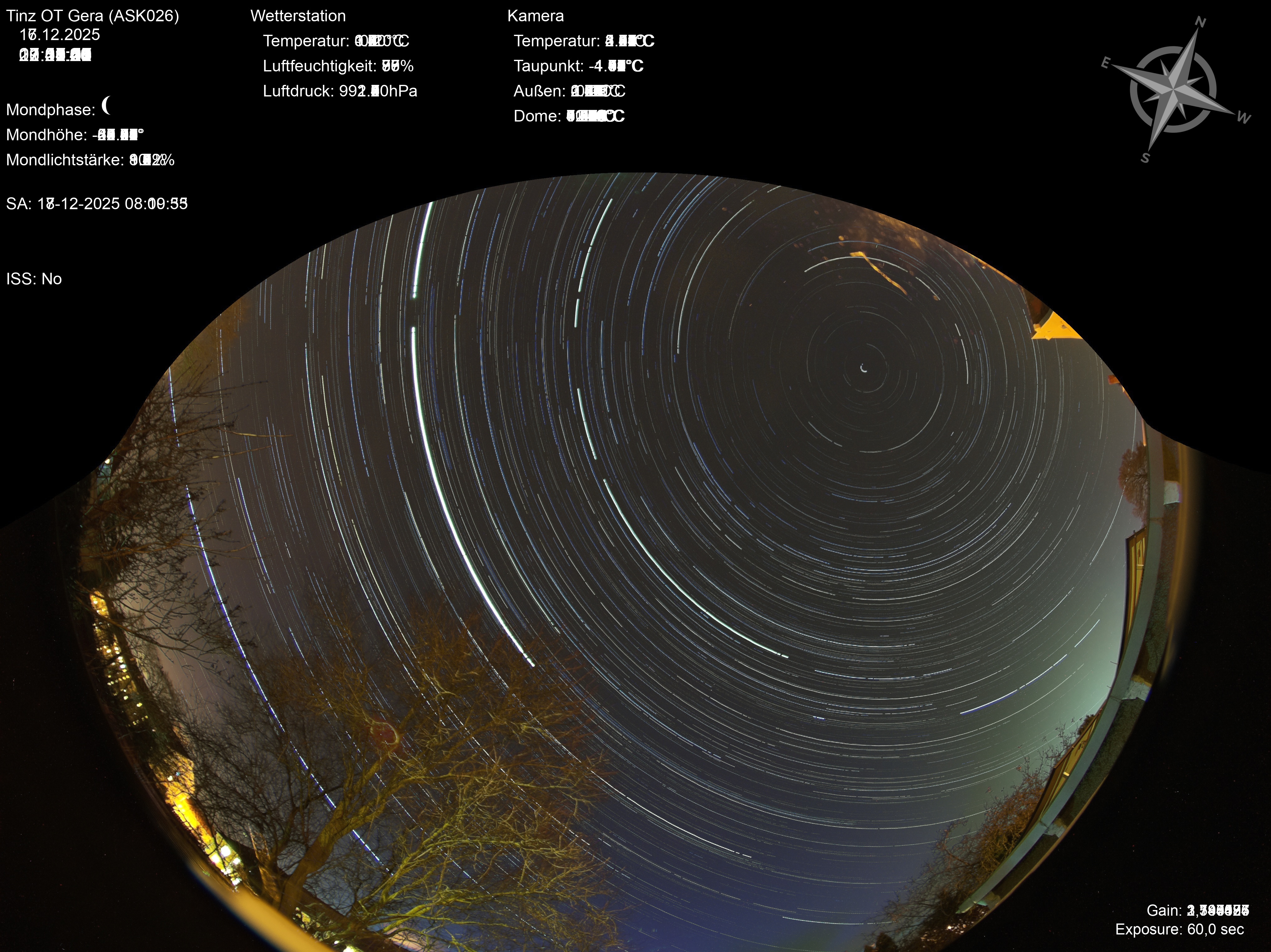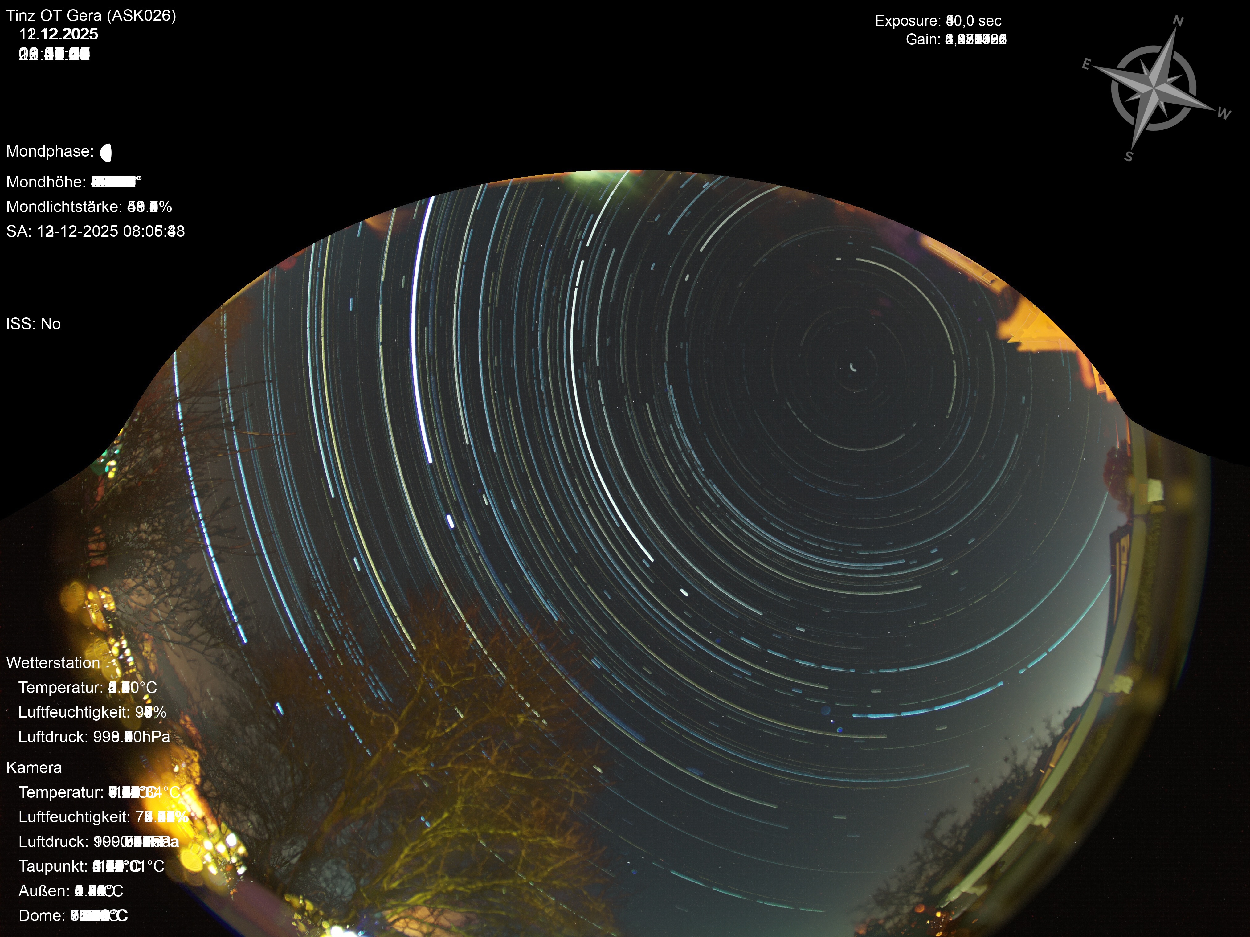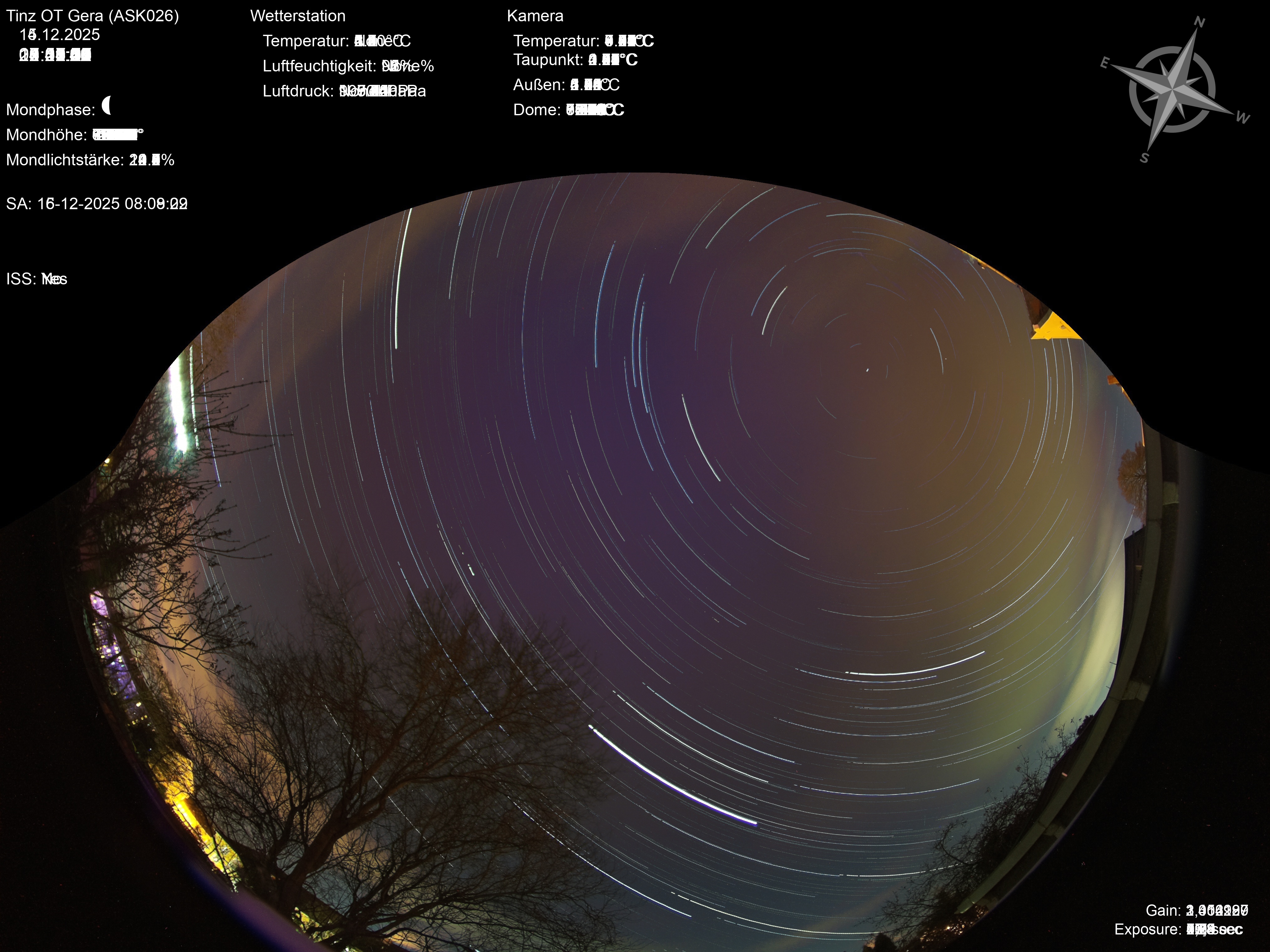 | Datum | 🎥 Video | 📈 Keogram | 🌃 SQM | 🌌 Startrails |
