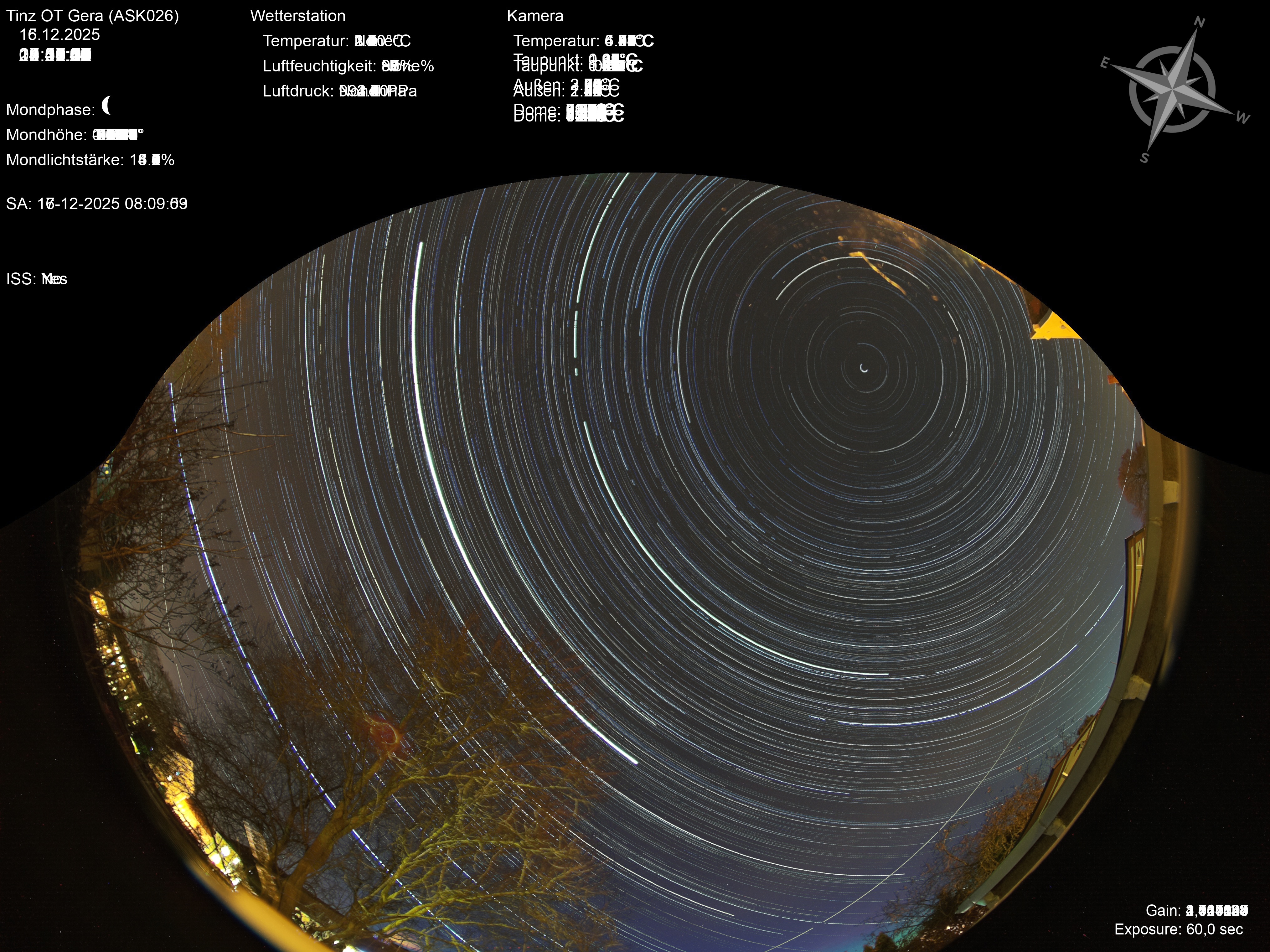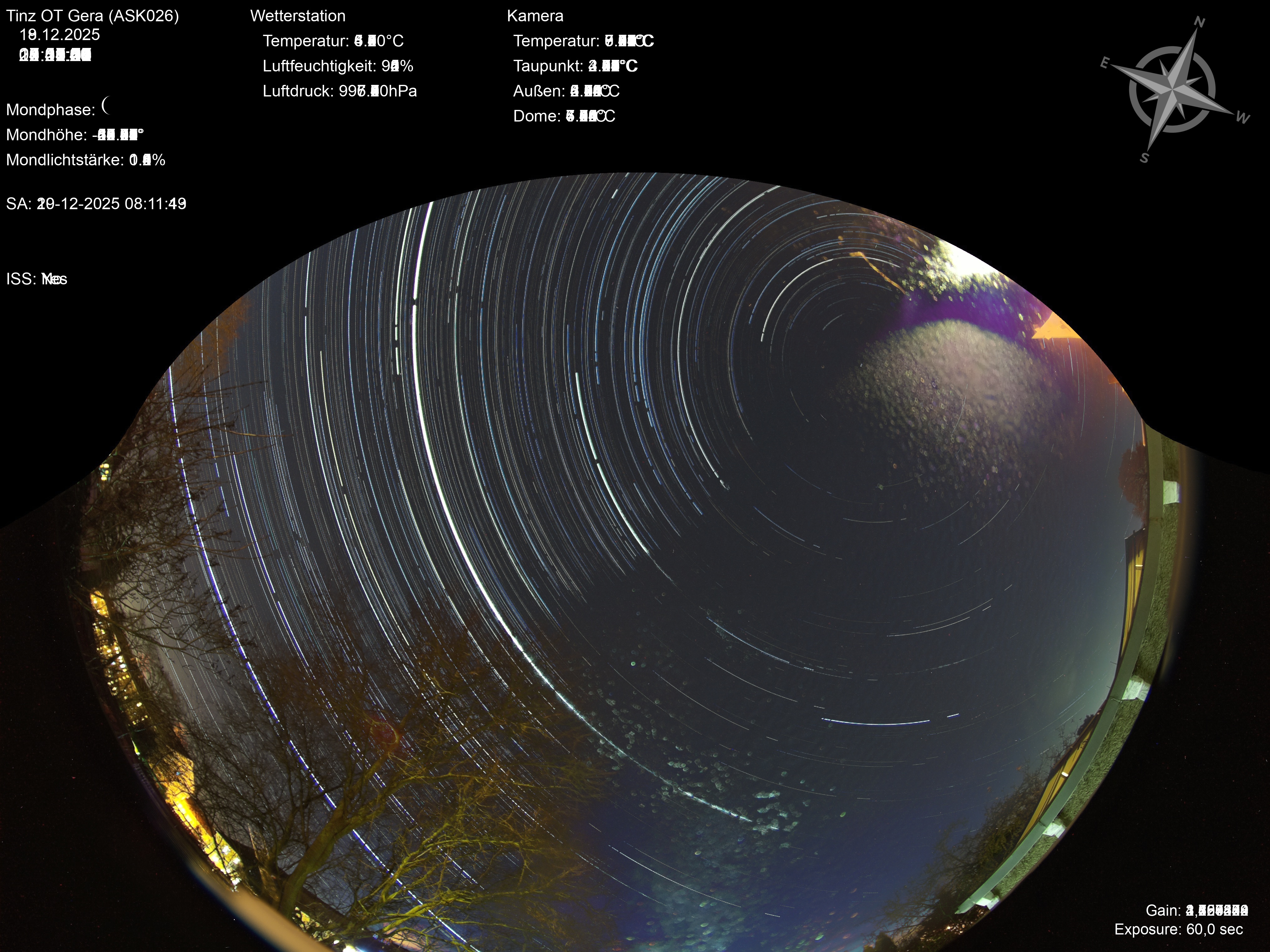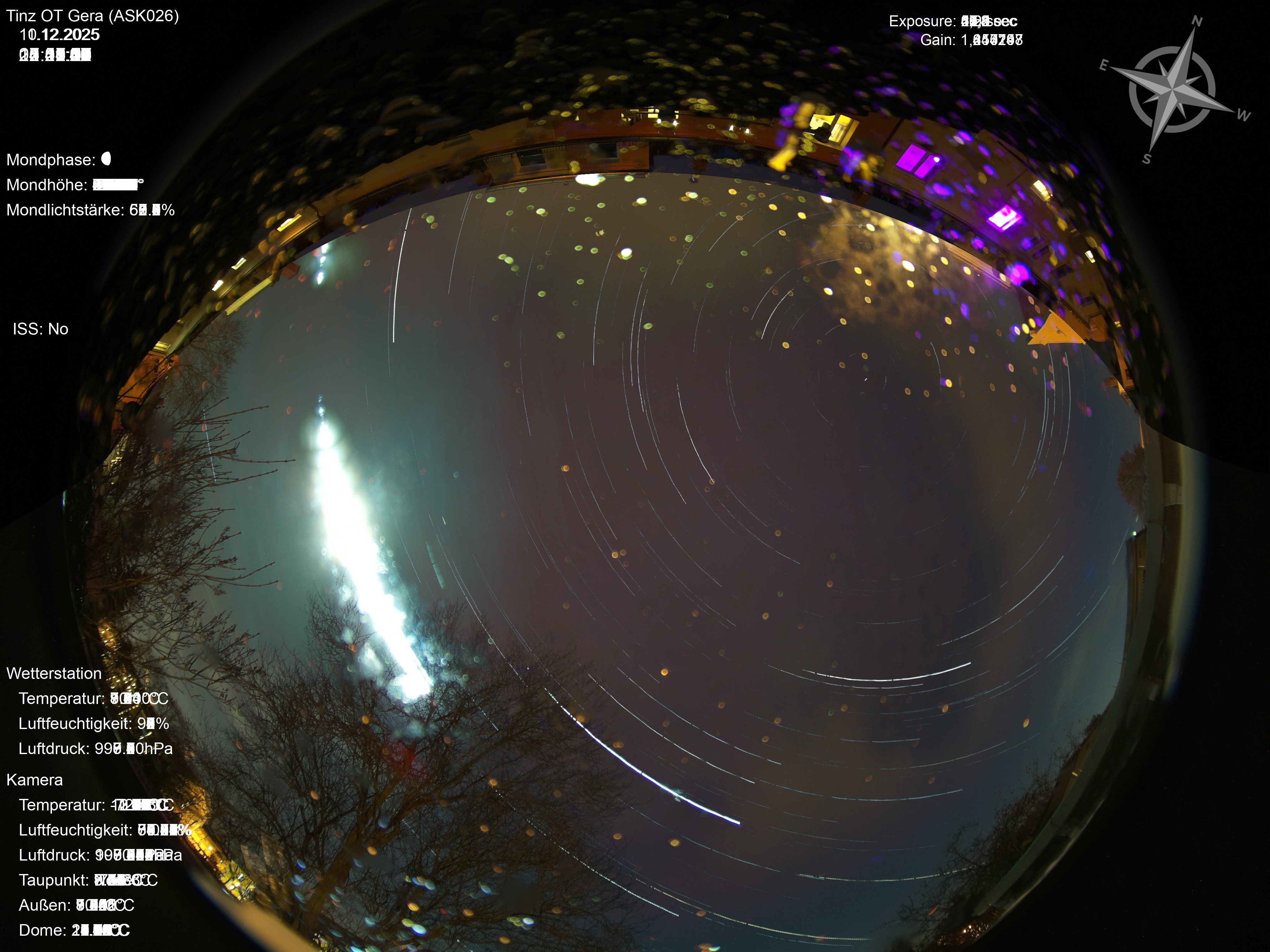 | Datum | 🎥 Video | 📈 Keogram | 🌃 SQM | 🌌 Startrails |