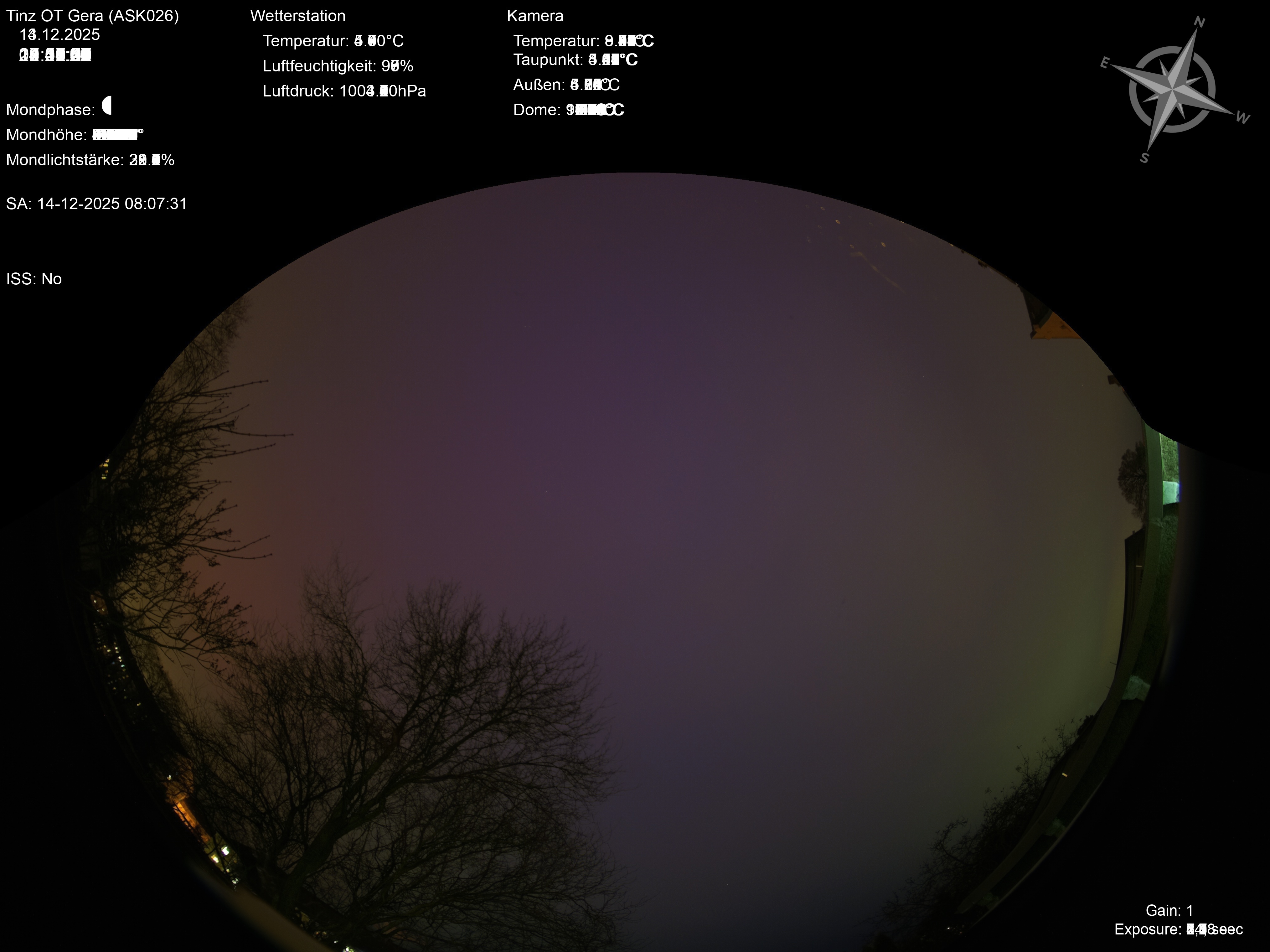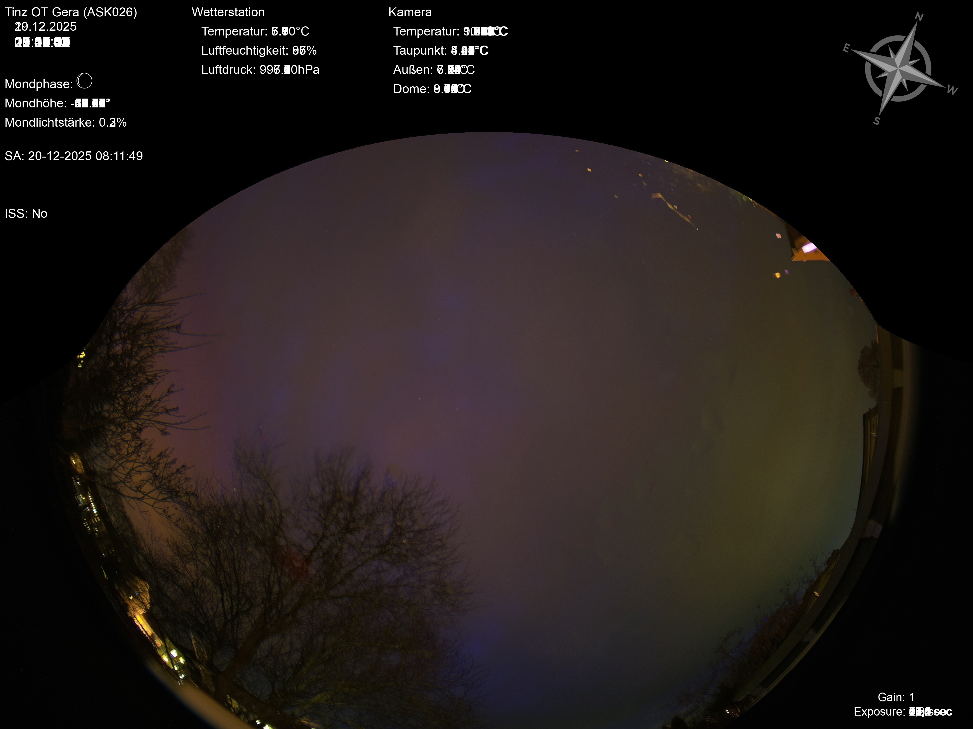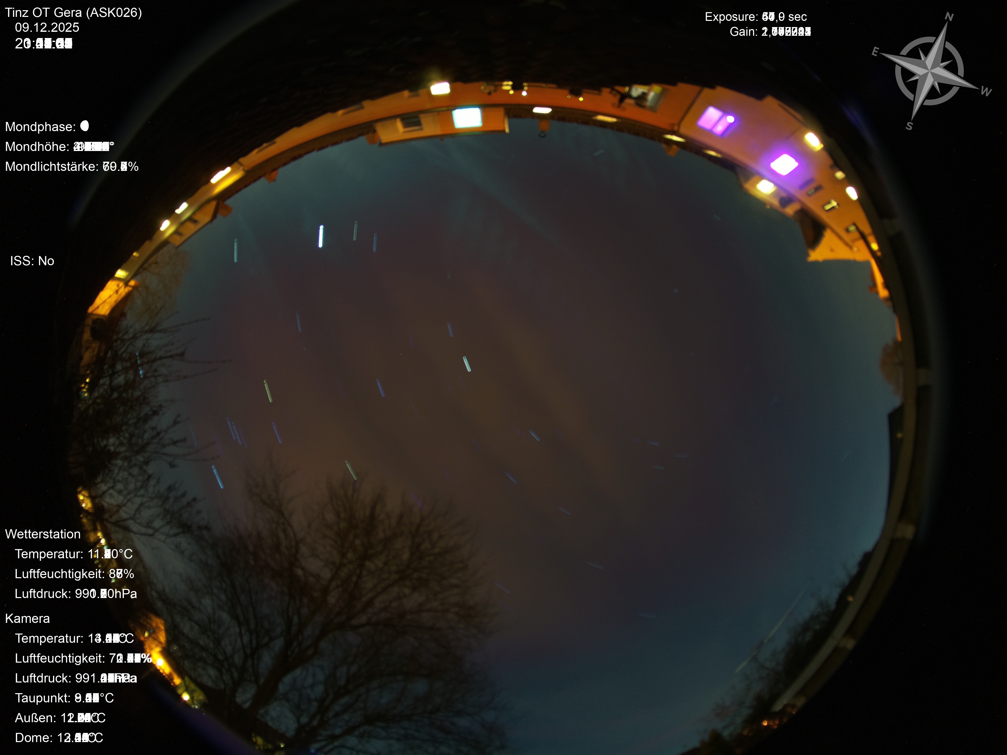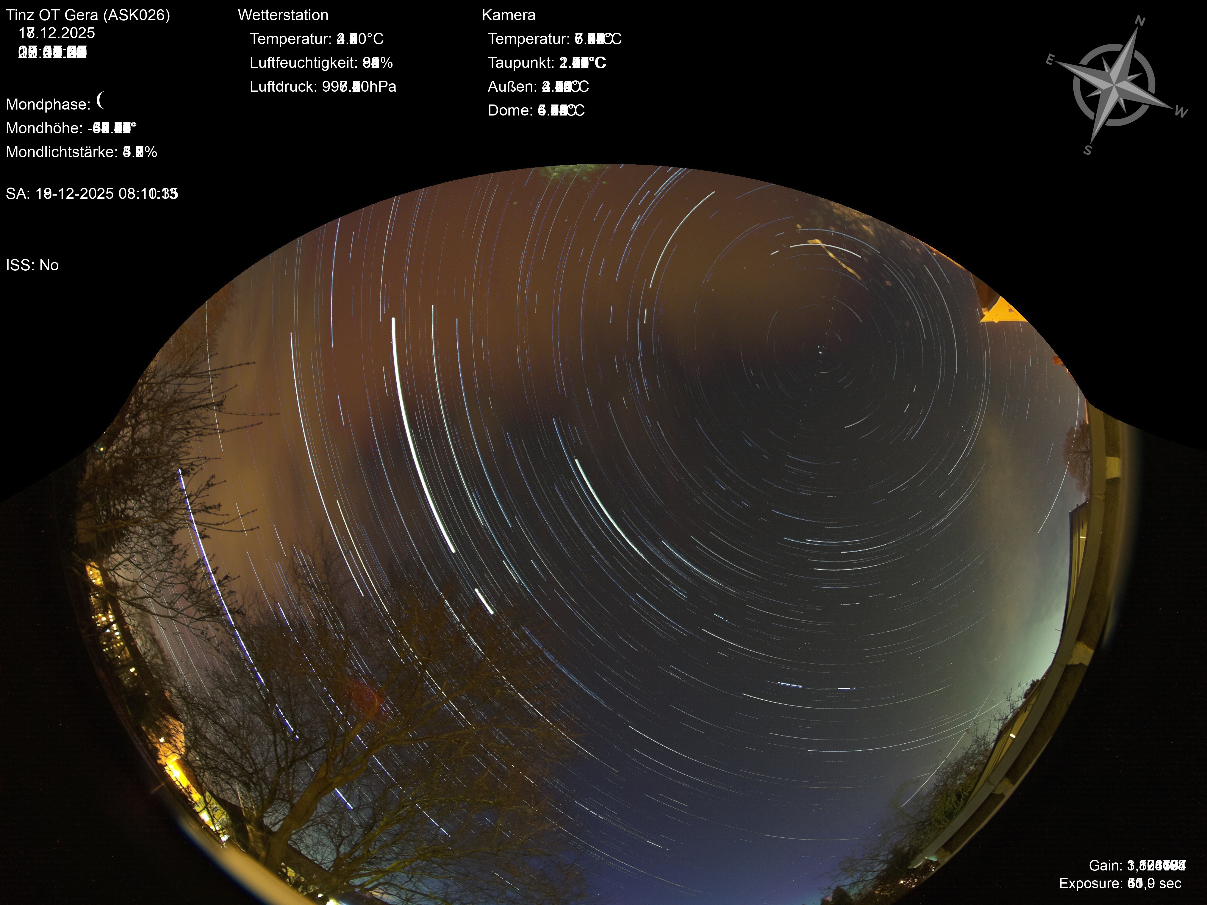 | Datum | 🎥 Video | 📈 Keogram | 🌃 SQM | 🌌 Startrails |